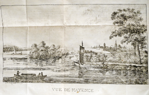 Illustré de 10 planches dépliantes figurant 1 carte, des vues (Mayence, Coblence, Neuwied), l'hôtel de la Grande prévôté de Mayence, etc. Selon Barbier, l'auteur (1746-1823), plus connu pour ses chansons et ses pièces légères, aurait bénéficié de la coopération de son épouse pour cet ouvrage.
