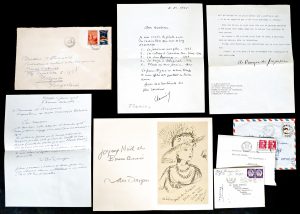 •DUNOYER DE SEGONZAC.- 2 lettres. 12-1-57 et 2-25-57 : il donne des indications de date et vente sur 1 tableau (paysage de Provence) et 1 dessin (nu) conservés par le musée.