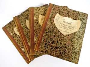 Cartonnage de l'époque : bradel demi-percaline brune à coins, étiq. ms. sur le plat sup., dos lisse muet (plats frottés, dos lég. passés, coiffes et coupes us.).