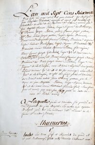 L'inventaire, établi en avril 1777 par Desrevaux, "arpenteur et expert juré des villes et chattellenie de Lille", qui s'est adjoint son confrère Lemesre, est passé devant notaire à Lille, le 29 décembre de la même année.
