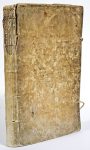 Rel. de l'époque : plein parchemin, titre manuscrit sur le plat sup., dos lisse, quatre lacets de toile grise, tr. jaspées de rouge (très us., dos à nu sur 13 cm en tête, 1 coin émoussé et à nu, rel. souillée).