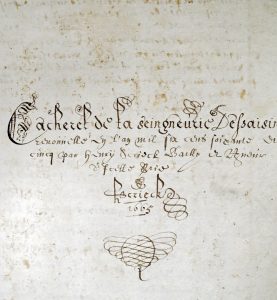 SCRIECK, Henry.- " Cacheret de la seingneurie [sic] Dessaisines […] ». [ Lille?], 1665. In-f° : 132 pp. + nombreux comptes et documents volants dont 1 imprimé (qqs pet. taches, bords lég. effrangés).