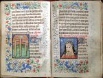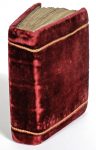 →Livre d'heures de petit format en latin sur vélin, de facture brugeoise destiné au marché anglais. Agrémenté de 22 pages avec miniatures dans le texte et bordures à trois-quart et 16 pages avec grande lettrine et quatre bordures (qqs marges faiblement rognées et/ou avec faible tache). Rel. moderne de velours rouge.