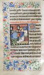 Style : The flat faces, thick-set, marionette-style figures are similar to those of the Master of the Dresden Prayer Book (Bruges, 1470-1480), while the foliate borders bear as well resemblances to the Master of the Hiero (Bruges, 1465-1470).