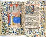 Style: the foliate borders in the tradition of the Master of the Gold Scrolls (Bruges, 1420-1435), while pleats and faces bear resemblances to the Missal of St. Magdalenagodshuis which was produced after the arrival of Willem Vrelant in Bruges in 1454.