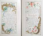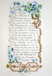 "Prière d'anniversaire" signée Marie Van Elegem et 27 prières enluminées à la façon des manuscrits médiévaux.