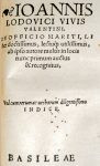 •VIVES, Juan Luis.- De officio mariti [...] ab ipso autore multis in locis nunc primum auctus & recognitus [...]. Basileae, in officina Roberti Winter, 1538 mense Martio. [38]-[2 bl.]-155-[3] pp. (incomplete of last blank lf.). Treatise on the institution of marriage, with observations on women's psychology and weaknesses, by Vives (1493-1540), Valencian scholar and humanist and friend of Erasmus.
