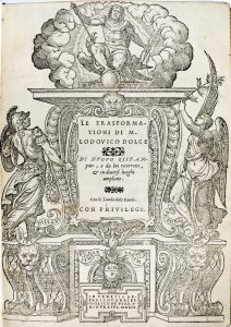 [ OVIDIUS NASO, Publius].- Le trasformationi di M. Lodovico Dolce. Di nuove ristampate, e da lui ricorrette, et in diversi luoghi ampliate […]. Venetia, appresso Gabriel Giolito de Ferrari e fratel., 1553. In-4° : [16, engr. title...
