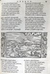 Second edition of the translation, or more precisely of the adaptation, by Lodovico Dolce of Ovid's Metamophoses, published the same year as the princeps. Illustrated with an architectural title-border (Giolito's phoenix device in it), a world map with America labelled "Nueva Hispania" and 84 woodcuts in the text with ornemental side pieces by the architect Antonio Giovanni Rusconi.