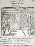 Fifth (and not fourth as stated on the title) edition (1st ed. 1564), printed by Plantin at Leiden, but a number of copies - as this one - received a title-page with his Antwerp imprint. Woodcut illustrations in the text : portrait of the author, 219 (of 221) emblems and 45 figures of coins or medals, by Arnold Nicolai, Gerard Janssen van Kampen and Cornelis Muller, after Pieter Huys and Lucas d'Heere. One figure showing tennis players (p. 121).