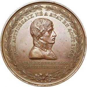 BATAILLE DE MARENGO : Mort du Général Desaix An 8 (1800) par Brenet et Auguste. Bronze 59,07 gr. 50 mm. Ess. 2724. Superbe