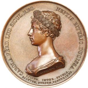 Duchesse de BERRY : Naissance d’Henri V 1821 Paris par Montagny et Laffite. Bronze. 71,01 gr. 51 mm. Magnifique portrait, haut relief. Superbe Médaille.
