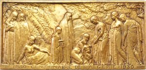 ALGÉRIE. Centenaire de l’Algérie : plaque uniface par Bréguet, 1930 Paris. Bronze, triangle.117mm/56mm. 279,73 gr. Superbe