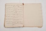 Cahier de 16 ff. in-4 sur papier vergé : 1 p. de titre ; 1 p. blanche ; 7 ff. manuscrits à l’encre brune ; 8 ff. blancs.