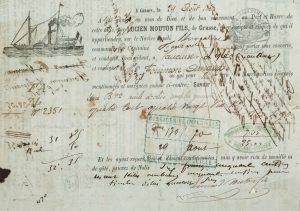 MARINE Ensemble de 20 documents sur la marine à voile et à vapeur dont connaissements de 1784 à 1900.