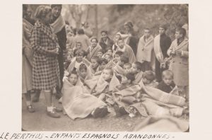STUDIO D’ART PHOTOGRAPHIQUE LUCIEN DE SOLIGNAC AMÉLIE-LES BAINS Guerre d’Espagne, reportage sur l’exode des républicains espagnols.1939 8 tirages argentiques d’époque sur cartes postales, tampon du photographe au verso, légendes...