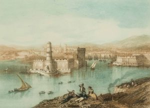 ENTRÉE DU PORT DE MARSEILLE en couleurs Gravure XIXème 25 x 34 cm