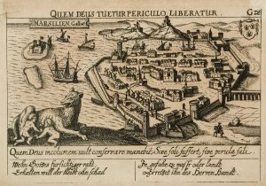 VUE de Marseille Gravure époque XVIIème. 14 x 19 cm