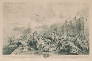 DE TROY. La peste dans la ville de Marseille en 1720 Gravure tirage XIXe 75 x 102 cm