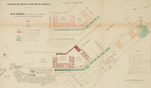 PLAN DU PORT de commerce Marseille 1868 Compagnie des docks et entrepôts de Marseille 45 x 60 cm