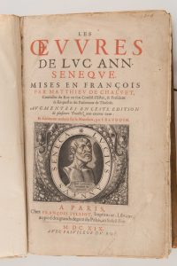 Pleine basane postérieure. Vignette-portrait de Sénèque en page de titre. Absence du titre-frontispice. Bon état, Reliure refaite, quelques défauts en marge.