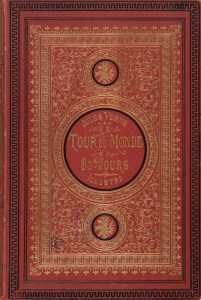VERNE (Jules) – Le Tour du Monde en Quatre-Vingts jours. (Les Voyages Extraordinaires. Paris, Jules Hetzel, collection, Bibliothèque d’éducation et de récréation, s.d. In-4 (17x27cm) 220p.