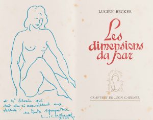 BECKER (Lucien) – [CADENEL] – Les dimensions du Jour. Paris, Léon Cadenel, 1951 [15 août 1950]. In-4 (16x25cm) en feuilles sous chemise rempliée illustrée et double emboîtage.