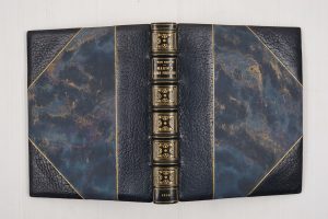 Demi-maroquin à coins, dos à nerf orné, tête dorée.