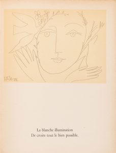 PICASSO (Pablo) - ÉLUARD (Paul) - Le Visage de la Paix. Paris, Editions Cercle d’Art, 1951. In-4 (22,5x29,5cm), broché, couverture à rabat. Impression sur le verso du feuillet seulement.