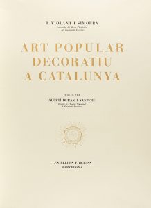 (ARTE ) - 1948 - VIOLANT I SIMORRA, R. : ART POPULAR DECORATIU A CATALUNYA. Pròleg per Agustí Duran i Sanpere. Barcelona : Ed. Les Belles Edicions, 1948. Folio. 248 p. , 1 h. Ilustrado con 45 láminas fuera de texto, una de ellas plegada y...