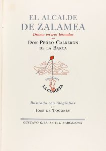 (BIBLIOFILIA) - 1933 - BARCA, CALDERON DE LA ; TOGORES, JOSE DE [ilustrador] : EL ALCALDE DE ZALAMEA. Barcelona : Ed. Gustravo Gili ; Ediciones La Cometa, 1933. 4º mayor. 200 p. aprox.