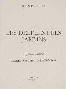 (BIBLIOFILIA) - 1980 - PERUCHO, JOAN ; RAVENTOS, MARIA ASSUMPCIO [grabados] : LES DELICIES I ELS JARDINS. Barcelona, 1980. 53 x 40 cm. Ilustrado con 10 grabados de M. A. Raventós estampado en papel de hilo con barbas.