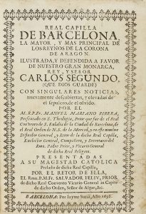 (BARCELONA) - 1698 - RIBERA, MANUEL MARIANO : REAL CAPILLA DE BARCELONA, LA MAYOR Y MAS PRINCIPAL DE LOS REYNOS DE LA CORONA DE ARAGON. . .