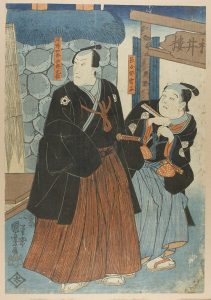 (GRABADO JAPONES) - 1840 ca - UTAGAWA ; KUNIYOSHI ? : RETRATO DE DOS PERSONAJES. Xilografía a color impresa sobre appel de arroz. 36 x 24,5 cm.