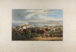 (PALMA DE MALLORCA) - 1844 - BAYOT ; GIRAULT DE PRANGEY ; BICHEBOIS : PALMA. Isla de Mallorca. El puerto de Palma visto desde la parte alta de la ciudad sector Castillo de Bellver. Paris : Imp. Lemercier, hacia 1844. 27x35 cm.