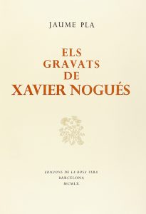 (BIBLIOGRAFIA-GRABADOS) - 1960 - PLA, JAUME : ELS GRAVATS DE XAVIER NOGUES. Barcelona : Ediciones de la Rosa Vera, 1960. Folio. X + 196 p. , 1 h. , 2 h. Ilustr. con grabados en texto.