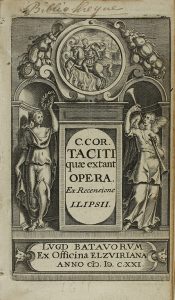 (HISTORIA) - 1621 - TACITI, C COR[NELIUS] : OPERA. EX RECENSIONE I. LIPSII. Lugd. Batavorum [Leiden] : Imp. Elzviriana, 1621. 12º. Portada grabada, 789 p. + 14 h.