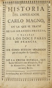 (HISTORIA) - 1666 ca - HISTORIA DEL EMPERADOR CARLO MAGNO, EN LA QUE SE TRATA DE LAS GRANDES PROEZAS, Y HAZAÑAS DE LOS DOCE PARES DE FRANCIA. . . Barcelona : Antonio Arroque, 1666 (extraída del prólogo). 8º menor. 4 h. + 241 p. , 3 h.