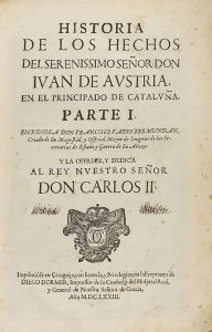 (HISTORIA) - 1673 - ESPAÑA FABRO BREMUNDAN, FRANCISCO : HISTORIA DE LOS HECHOS DEL SERENISSIMO SEÑOR DON IUAN DE AUSTRIA, EN EL PRINCIPADO DE CATALUÑA. Zaragoza : Imp. Diego Dormer, 1673. 4º mayor. 5 h. + 458 p. y un magnífico retrato...