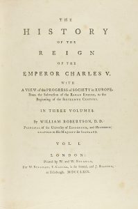 (HISTORIA) - 1769 - ROBERTSON, WILLIAM : THE HISTORY OF THE REIGN OF THE EMPEROR CHARLES V with a view of the progress of society in Europe from the subversion of the Roman Empire, to the beginning of the sixteenth century. Vol I y II. London : ...
