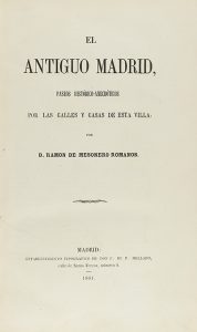 (HISTORIA ESPAÑA-MADRID) - 1861 - MESONERO ROMANOS, RAMON DE : EL ANTIGUO MADRID, PASEOS HISTÓRICO-ANECDÓTICOS POR LAS CALLES Y CASAS DE ESTA VILLA. Madrid : Tip. F. de P. Mellado, 1861. 4º menor. 4 h. + LXXX + 399 p.