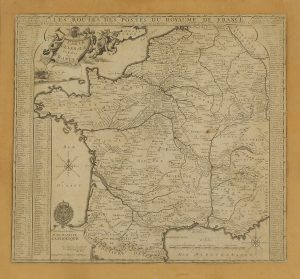 (FRANCIA-MAPA DE POSTAS) - 1700 ca. - FER : LES ROUTES DES POSTES DU ROYAUME DE FRANCE. Mapa grabado al cobre, 44,5 x 49 cm.