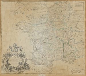 (FRANCIA) - 1719. - A NEW MAP OF FRANCE showing the routes and post stages thro out that kingdom. . . Mapa grabado al cobre, límites coloreados, 52 x 59 cm.