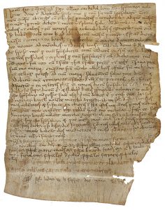 (VALLES-CARDEDEU) - 1206. - GUILLEM CARDEDOL HACE DONACIÓN A SU MUJER RAIMUNDA DE SU MASÍA SITUADA EN LA PARROQUIA DE CARDEDEU. Manuscrito sobre pergamino 19 x 15 cm.