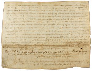 (VALLES-CASTELLAR DEL VALLES) - 1241. BERNAT Y SU MUJER VENDEN A ARLET FELIU UNA TIERRA SITUADA EN LA PARROQUIA DE CASTELLAR DEL VALLES. Manuscrito sobre pergamino 16,5 x 22 cm. 1241.