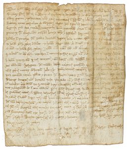 (VALLES-CORRO DE DALT) - 1256. - JOAN JOVER Y SU MUJER BENETA VENDEN A CARBONELL DE TORRENT EL CENSO QUE RECIBEN ANUALMENTE POR UNA TIERRA SITUADA EN LA PARROQUIA DE CORRÓ DE DALT. Manuscrito sobre pergamino, 19 x 16,5 cm. Cerco de humedad, que...