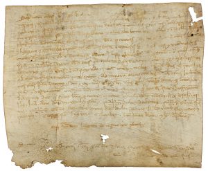 (VALLES-CASTELLAR DEL VALLES) - 1262. - DOLÇA ANDREU RENUNCIA A FAVOR DE SU HERMANO BERENGUER ANDREU A TODOS LOS DERECHOS QUE PUDIERA TENER SOBRE LA MASÍA ANDREU DE LA PARROQUIA DE CASTELLAR DEL VALLES. Manuscrito sobre pergamino, 15 x 18,5 cm. ...