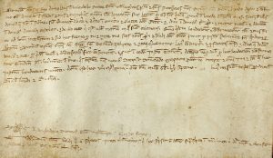 (SAN PERE DE VILAMAJOR) - 1267. - VENTA DE UNA PIEZA DE TIERRA. Interviene : Arnaldus de Vilardell, rector de la iglesia de Vilamajor. Pergamino. 13,5x22,5 cm. Buen estado de Conservación. Algunas palabras en lengua catalana.