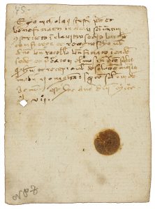 (BARCELONA) - 1347. - NICOLAU. . . PREBERE Y BENEFICIAT DE LA SEU DE BARCELONA. Á BERNAT ROSSELLO PROCURADOR DE L´ALMOYNA DE DITA SEU. 15 X 11 cm. Restos de sello de lacre.