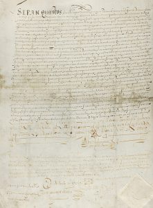 que soy de Vitoria están al presente en la villa de Valladolid. Otorgo y conozco por esta carta que doy e otorgo todo mi poder cumplido […] con libre y general administracion a los Señores Gregorio Acero mayordomo del Virrey de Sicilia y a Adrián de Pape residentes en la ciudad de Palermo del reino de Sicilia.